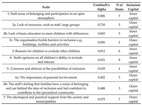 5.9. Scale 6b: The Staff’s Feeling that Families Have a Sense of Belonging and Are Behind the Idea of Inclusion and Feel Confident to Contribute to the (Pre)School Community