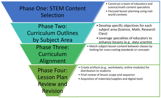 - Burns, H.D.; Murphy, S.A.; Johnson, M.; Bracey, G.; McKenney, M.; Vogel, A. Board 111: STEM Curriculum for a Minority Girls’ After-School Program (Work-in-Process-Diversity). In Proceedings of the 2019 ASEE Annual Conference & Exposition, Washington, DC, USA, 25–28 June 2019. [Google Scholar]