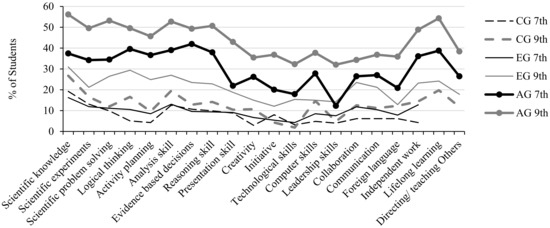 - Salonen, A.; Hartikainen-Ahia, A.; Keinonen, T.; Direito, I.; Connolly, J.; Scheersoi, A.; Weiser, L. Students’ Awareness of Working Life Skills in the UK, Finland and Germany. In Bridging Research and Practice in Science Education: Selected Papers from the ESERA 2017 Conference; McLoughlin, E., Finlayson, O., Erduran, S., Childs, P., Eds.; Springer: Cham, Switzerland, 2019; pp. 123–138. [Google Scholar]