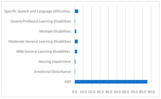 Perhaps the most notable feature of Irish special classes over the last decade is their designation being primarily for students with Autism. Where special classes are sanctioned, the NCSE and the SENO are responsible for setting them up and assigning them a designation based on the level of demand [19]. Over 85 per cent of special classes in Ireland are now designated for students with ASD with the second largest designation categories being classes for students with Specific Speech and Language Difficulties (SSLD) and classes for students with an MGLD diagnosis (Figure 2).