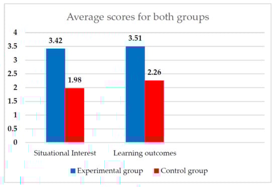The average scores on situational interest and learning outcomes are presented in Figure 2.