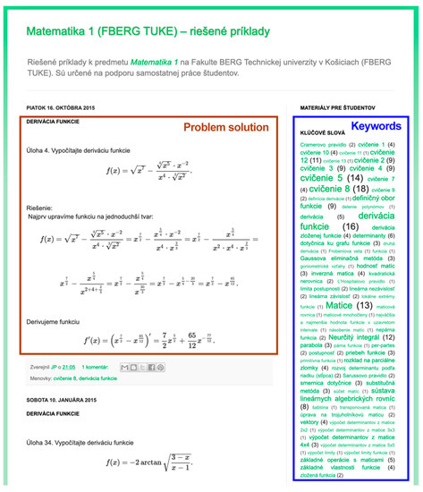 Therefore, Blogger was a perfect candidate for creating online material with static content for the Mathematics 1 course (Figure 1) [17].