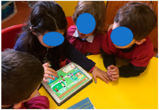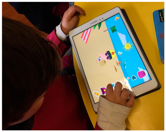 Recent studies point out that access to mobile devices is universal for children up to eight years old and indicate tablets as their favorite devices. Using comparative data from 2011 and 2017, a report on the use of screen media by North American children ages zero to eight points out that the major change has occurred in the type of devices rather than in screen time, which remained approximately 2 h a day. The use of mobile devices has increased substantially (from 5 to 48 min a day) while the use of television, DVD players, computers, and video game consoles has decreased. The study indicates that 95% of children aged zero to eight have a smartphone at home and 42% have their own tablet. 67% of parents believe that the use of digital media helps their children in learning [19]. In Portugal, a study on the use of technology in early childhood also indicates the tablet as their preferred device. In terms of consumption, 50% of children play digital games and 50% of children aged three to five who access the internet, use their own tablet [20]. The mobile market has brought a wide range of educational apps that integrate different ways of understanding, knowing and expressing, valuing the multiple forms of intelligence—linguistic, mathematical, creative and artistic. A learner with access to a selected set of educational apps can perform activities in languages, arts, sciences, among others [21]. Children in pre-school education can benefit from the characteristics of tablets, due to the appropriate size, portability and long battery life, which gives them autonomy in use and allows them to explore apps in various locations. The possibility of multitouch interaction also favors joint use with friends, educators and parents. There is a wide variety of apps with multimodal content, available for different educational purposes and appropriate for these ages [22]. Educational apps can be classified into three levels: instructional apps, based on exercise-reward, aimed at the acquisition of specific content and skills; manipulable apps that manage ideas and content, allowing multiple responses to a set of variables; constructive apps, with an open structure that serves to create or communicate, allowing learners to build a learning object from a set of available components. In terms of contribution to cognitive development, there is a growth in the learner’s involvement and motivation from instructional to constructive apps [23]. Most educational apps are not directly related to specific curricular themes, but have versatility and flexibility to be used in different contexts.
