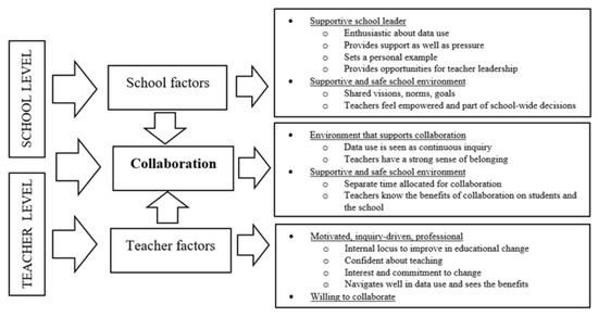 Second, to promote teacher collaboration in data use, there needs to be a safe environment. A safe and supporting school culture is a precondition for collaboration to occur [32]. School leaders play a significant role in cultivating an open climate and positive, trusting relationships that encourage the teacher’s willingness to become involved in decision-making processes [1,33].