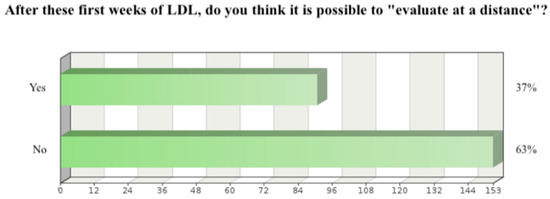 Regarding the Perspective on LDL section, it can be seen that 52% of the involved teachers disagree with the sentence, “In this period of LDL I feel a decrease in the quality of my work”, and about 70% agree with the sentence, “The fact that I am in constant contact with my students makes me feel very present at an educational level”.