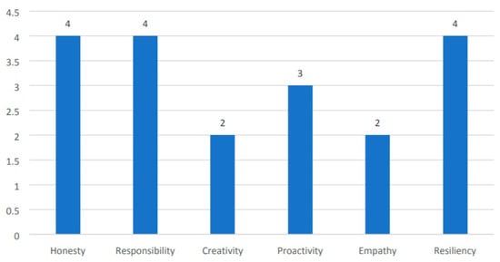 If we reflect on the competencies that the participants have identified, we find that the main focus is soft skills, confirming Aldulaimi [61], who considers them as keys towards effective performance across job categories, comparing to the technical skills. The leaders of the universities must follow a continuous process of ensuring effectiveness, with a focus on the progress of the educational process. Its success or failure is related to the type of relationship that exists between the leader and other agents (students, professors, and management personnel). This also confirms the literature on effective communication [62], since trust, mutual respect, positive influence, caring, and appreciation are key skills for successful communication. The leaders of educational institutions derive their importance from their ability to use all available means of innovation and creativity to adapt to the goals of the educational process and improve the performance of human resources [61]. Of course, soft skills alone are not enough to lead such complicated processes as organizational change of educational institutions; solid knowledge of strategic planning and resource management also seems to be indispensable to success [62].