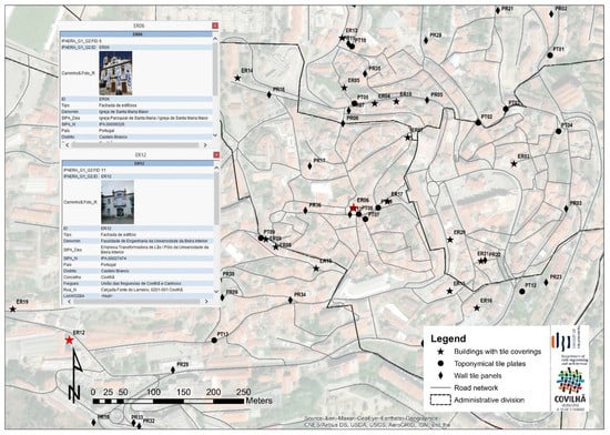 Spatial distribution of glazed tile works considered in a GIS-tool proof of concept developed in partnership with Covilhã Municipality (adapted from []).