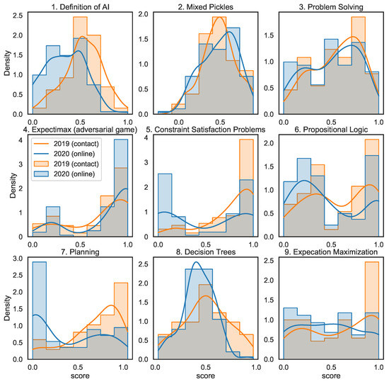 Thus, it is important to know how a course specifically designed for, e.g., on-site teaching, will perform in a hybrid or online setting in terms of the students reaching that course’s educational objectives. This transcends the question of whether going online is merely possible at all [46], as the didactic concept and respective teaching material cannot be adapted that quickly. The move away from on-site teaching was done very rapidly and involuntarily, with the side-effect of no planned, controlled data collection on student learning before and after. Furthermore, as the courses are single-semester, we also do not have longitudinal data within the same cohort of students. Thus, we saw ourselves forced to stray from DBR principles and to (i) combine the qualitative data with (ii) use the quantitative exam data to specifically compare between the effectiveness of the AI-Atlas for on-site and online teaching.