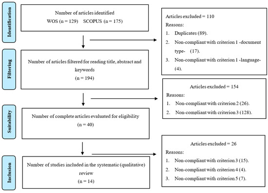 A systematic literature review is presented in this study, given that the selection of work has been done on the basis of clearly defined and explained criteria for inclusion [37]. In addition, the selection process was designed in accordance with the PRISMA Declaration [38].
