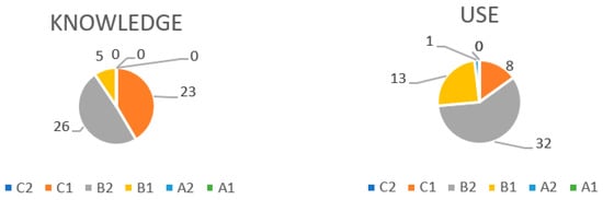 Overall, the respondents achieve a B2 or ‘upper intermediate’ level of knowledge, and a B2 or ‘upper intermediate’ level of use.
