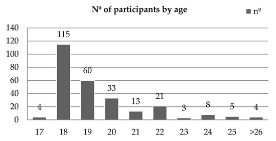 The sample consisted of 37% men and 63% women between the ages of 17 and 38, with 50% of the participants being 18 years old. (Figure 1)