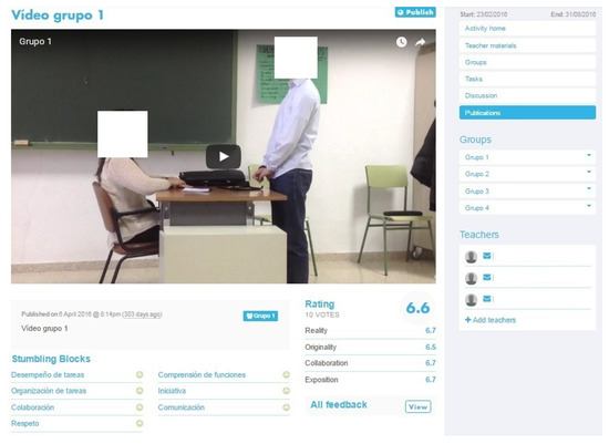 To measure how the participants interacted with the iPads and the application, we first used the direct observation technique. The observer had worked with the participants previously, which helped them to work without any distractions. Overall, the students knew how to interact with iPads since they are included in their curricula and they use them regularly. Touch interaction seemed suitable for them as they discovered the functionality of ClipIt as the sessions progressed. Since ClipIt has a responsive layout, the user interface was adapted automatically to iPads, and the participants were able to see each element of the platform without effort. In addition, the peer-review process using rubrics is easy for touch devices, since the participants only had to touch the score they wanted to give to each concept and then touch a submit button.