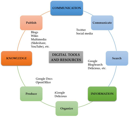 In this model, digital competence is defined as “safe and critical use of Information Society Technologies (IST) for work, leisure and communication” [7] (p. 15).