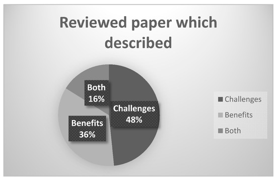 Percentage of the articles reviewed based on categories: benefits, challenges, and both.