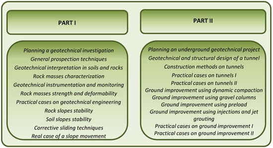 - Monroy, R.; Torrijo, F.J.; Hernández-Pina, F. Lecturers’ perceptions of students’ learning needs in geo-engineering in Spain. In Shaking the Foundations of Geo-Engineering Education; McCabe, P., Phillips, Eds.; Taylor & Francis Group: London, UK, 2012. [Google Scholar]