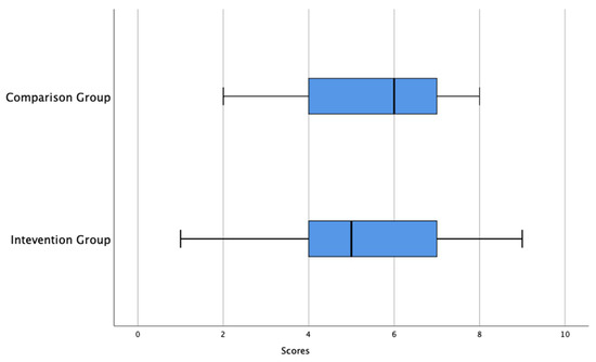 Additionally, the results of the ANCOVA (F (1, 197) = 53.9, p = 0.00] indicated a significant difference in post-test scores between the two groups after adjusting for the pre-test scores. The participants in the intervention group obtained higher scores on the post-test than those in the comparison group, with an effect size reported (η2 = 0.215). Since Montgomery [30] has stated that the eta squared effect size cut off points are small = 0.01, medium = 0.06 and large = 0.14, an effect size of η2 = 0.215 indicates a large effect size. The adjusted marginal mean post-test scores are displayed in Table 4.