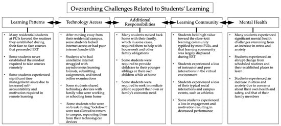 Key findings related to the themes of learning patterns, technology access, additional responsibilities, learning community, and stress and anxiety are summarized in Figure 2.