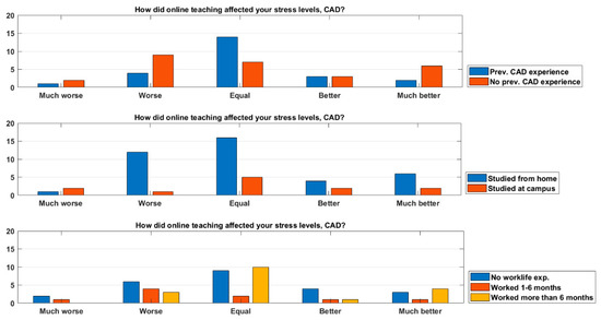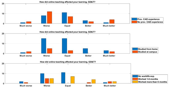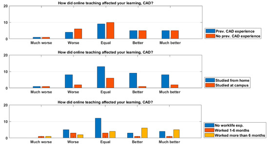 How a student experiences the online teaching in CAD can of course be affected by the student’s background. To investigate this, the background questions 5–7 were used.
