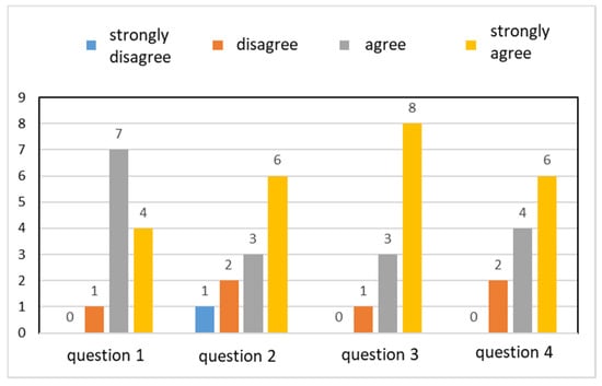 As shown in Table 1, since the academic year 2017–2018, the course was included among the courses necessary to access the ‘public national competition’ for chemistry teachers to be employed in the Italian secondary schools (‘PF24’ training program) []. Since then, the number of students attending the course slightly increased. Most of the attenders were students at the third or fourth year of undergraduate studies of the Degree in Chemistry curriculum. Few students (5 in total) were in-service chemistry teachers with a temporary school teacher position; few students (3 in total) came from different curricula then Chemistry (i.e., Pharmacy or Chemical Engineering Degree courses). In general, students attending this course were motivated and interested to the chemistry teaching course for their future job, as it was evident from the analysis of the voluntary and anonymous surveys (see Section 5). As shown in Table 1, the percentage of students answering the voluntary surveys with respect to the number of students attending the course of “Chemical Education”, in the last four academic years, varies from a minimum of 56% (2018/2019) to a maximum of 79% (2020/2021). The content of the surveys will be commented in Section 5 discuss students’ motivation, interest, engagement and satisfaction concerning the educational activities proposed during the course.