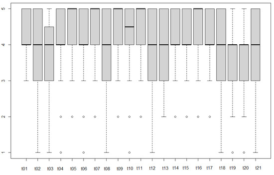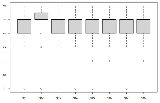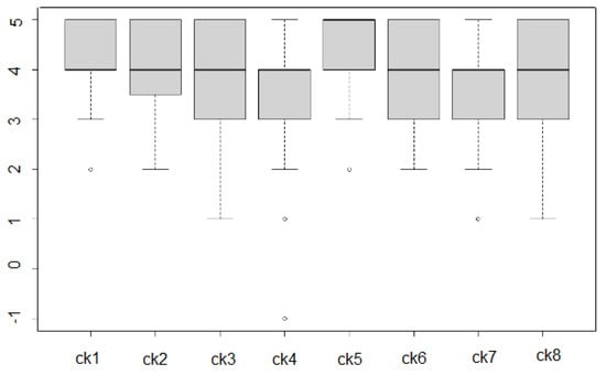 The pre-service teachers assessed themselves homogenously high on ESD-related content knowledge; the median was 4 for all items (see Figure 7). They felt most competent in system thinking (CK2) (see Figure 7 and Box 1). The importance assigned to the items correlated to the assessed competence (p < 0.01), but it was more heterogeneous and slightly higher (see Figure 8). The median was four for all items, but dynamics and interdependencies of global processes (CK5) were rated the most important (median = 5).