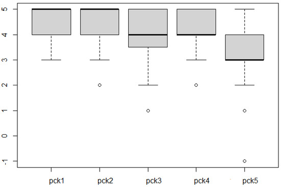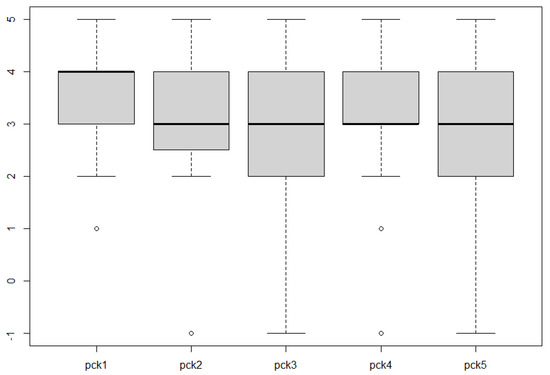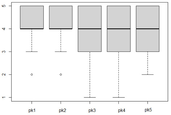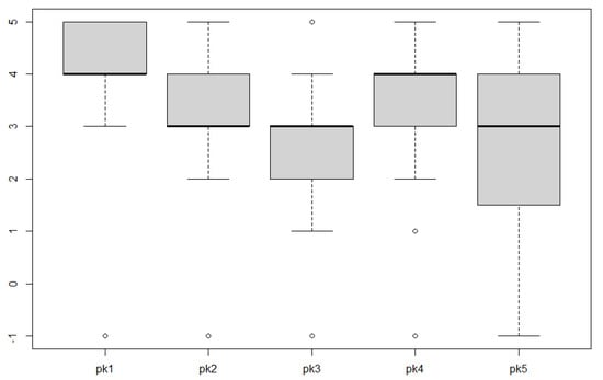 The pre-service teachers assessed themselves as having medium ESD-related pedagogical knowledge. Still, their assessment varied between the different items, with the median ranging between three and four (see Figure 11). They felt most competent in the change of perspective (PK1 see Figure 11 and Box 3). The importance of the PK items was rated higher than the competence and more homogenously (see Figure 12). This difference resulted in a gap between the median of importance (= 4) and assessed competence level (= 3) for the items on dealing with complexity and uncertainty (PK2), participation and co-creation in terms of Agenda 21 (PK3), and open schools to cooperating with external partners (PK5).