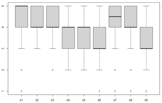 The pre-service teachers assessed themselves as having a high social and personal competence (see Figure 13). They felt extremely empathetic (S1) (median 5). It is noticeable that the social competencies were assessed higher than the personal (see Figure 13 and Box 4). Tolerance of ambiguity and frustration (S6) and visionary thinking (S9) were assessed as the lowest (median = 3). There was no correlation between the semester number and competence level. The school practice correlated by 0.22 (p < 0.05). There was no gender effect to the competence assessment.
