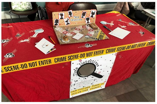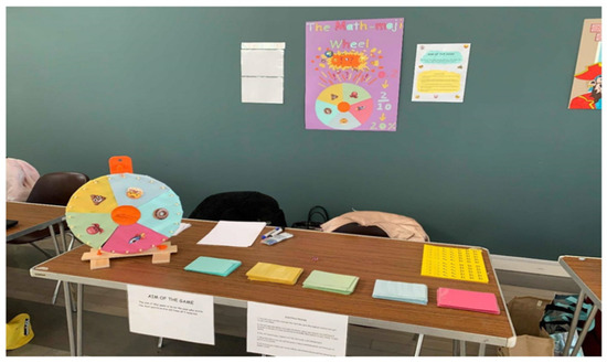 Invitations were sent to local primary schools, and three replied positively. Also, two mathematics/numeracy coordinators from one of the Regional Improvement Collaboratives (RICs) attended the Fair, discussed with students, and provided some valuable feedback/comments on the spot (for more about RICs, see the website of the Scottish Parliament, https://spice-spotlight.scot/2020/01/06/rics/ Accessed on 18 December 2021). During the Fair, tutors from the University were present and made sure that different groups of children visited each game. As observed by the accompanying teachers, the university students, and this paper’s authors, the children interacted with all games enthusiastically. In Figure 1, Figure 2, Figure 3 and Figure 4, we present four examples of games designed by students. After each figure, we present a description of the game, as included in the respective student’s essay (Anna for Figure 1; David for Figure 2; Sandra for Figure 3; Jenny for Figure 4).