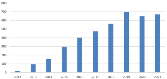 As only incomplete data are available for the year 2022, and the earliest indexed publications were published in 2011, the search period has been limited to 10 publication years: 2012–2021.
