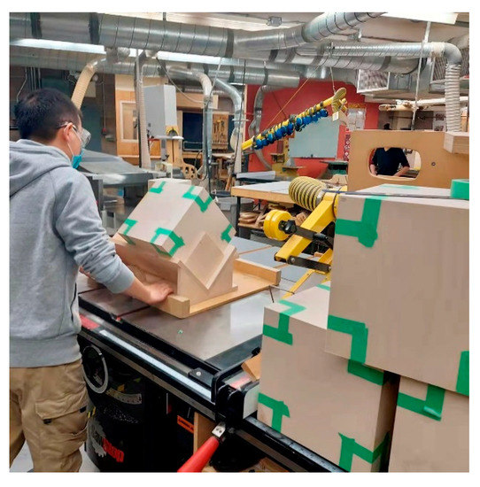 Like many architectural schools, students benefitted from crucial human and infrastructural resources for workflow and tooling needs. These included a rough building room with gardening equipment, such as shovels, rakes, and wheelbarrows; a traditional woodworking shop, with machines and tools to shape and assemble wood and other materials; and a Digital Fabrication Lab with a trained supervisor. The Digital Fabrication Lab manipulates materials by directly reading data sent from students’ computer files, and it enables the creation of elements that are too complex or detailed in shape to make in the traditional woodshop.