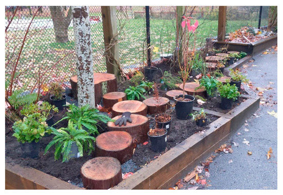 A number of different textual resources were made available to students including the City of Vancouver Child Care Design Guidelines [17], The Canadian Child Care Federation toxic plant list [18], Inspiring Scotland and Play Scotland’s Loose Parts Tool Kit [19], as well as the Risky Play Meets Nature Play project. Students were provided links to Canadian shade audits and sun safe guidelines [20,21]. Students also made field trips to local nurseries and a landscape supply centre which specialized in locally sourced material.