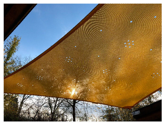 Shade sail with hole patterns.