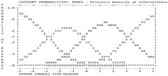 These values were confirmed to be appropriate and acceptable to construct validity from previous statistics for both PTT and CTP surveys to assure the validity construct according to the Rasch model. The category structure on scale gradation and size structure of the junction is summarized in Table 4 and Table 5 and Figure 1 and Figure 2. In the surveys, the timetables for grading scale calibration analysis are also shown.