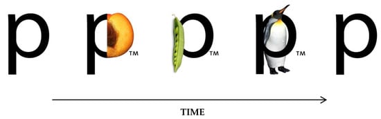 We utilize a picture-embedded “mnemonic” technique to teach English letter-sound correspondences (phonics) to beginning readers in kindergarten and extend previous research in several ways. First, the presentation of the mnemonic cues was dynamic, and children could interact with the digital text. For example, as shown in Figure 1, when a child sees the letter “p” on the device screen, they can touch it and then view a series of photographic images that begin with the /p/ sound, such as peach, peapod, and penguin, superimposed on the letter, while hearing the name of each picture to emphasize the similar first sound. Each superimposed image follows the graphic and interactive communication design principles of distinctiveness, visibility, usability, memorability, universality, durability, and timelessness [60]. At the end of the sequence, the final bare form of the grapheme is similar to the fading out procedure of de Graaff et al. [30]. The premise is that after training, the letter then works as a visual trigger for recalling the images associated with it—images that cue the learner to its letter sound.