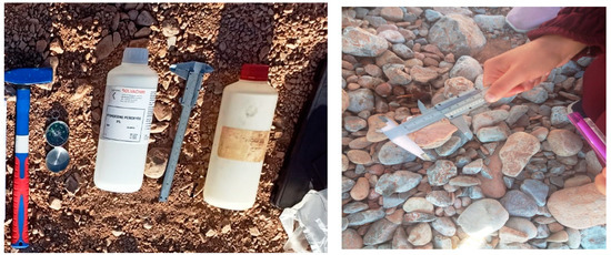 The fieldwork approach faces specific challenges either in its preparation stages or in related operational acts because it needs instruments, transportation, and safety precautions, for example. Several techniques and tools were used during the fieldwork. The geologic hammer, a small bottle of 10% hydrochloric acid to test for the presence of calcium carbonate, the compass to define directions, and the geologic and topographic maps are elementary tools provided in the fieldwork (Figure 3).