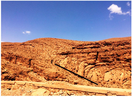 Students are encouraged to observe the geomorphic aspects of carbonate dissolution and deposition (karstification). Indicators of their impacts on landform genesis and evolution are discussed on a large and micro scale. The limestone and dolomitic layers are abundant, and the material dissolution and sedimentation traces are observed either on layers or on individual rocks. They are initially resistant but are progressively weakened by tectonics and karstification. The teaching environment in high school should consider this complexity [34]. In several cases, they are exposed to vertical fluvial incision, forming narrow and deeply incised canyons, including the Dades gorges, the stratification joints of these layers and their inclination are facilitating water infiltration and surficial water erosion (Figure 5).