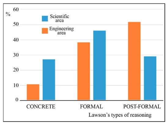 The former discussion seems to give a positive answer to our research question. However, the differences between the two subsets suggested that we should conduct a further in-depth analysis. To this end, it was useful reconsidering the data in Figure 3, taking into account that the students of the engineering subset presented a better performance in the Lawson’s test (mean value score ) than the performance of the students of the science subset (mean value score ).