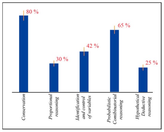 - Valanides, N. Formal reasoning abilities and school achievement. Stud. Educ. Eval. 1997, 23, 169–185. [Google Scholar] [CrossRef]