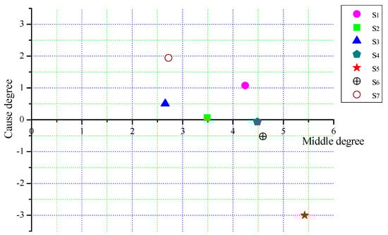 Step 7. By drawing the scatter diagram of the relationship between the middle degree (M) and the cause degree (C) in the coordinate system, the core elements or non-core elements can be judged according to the actual situation.