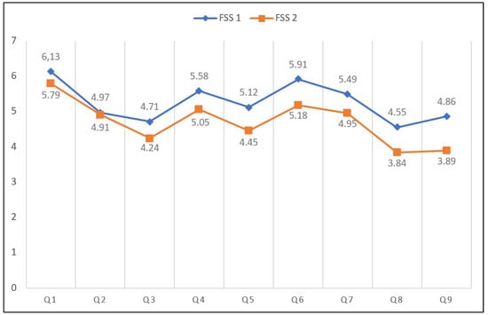 Reliability analysis of the FSS tool using the “test–retest” method.