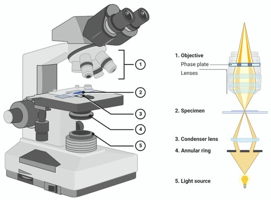 Scheme of a microscope and its section. Adapted from “Phase Contrast Microscopy”, by BioRender.com (2022).