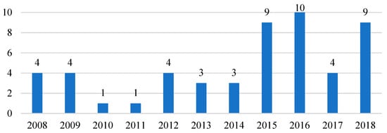 As Figure 2 shows, the year with the most studies was 2016. The results show an increase in the numbers of articles between 2015 and 2018.