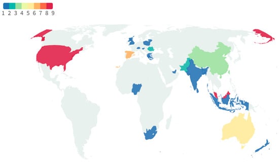 The initial analysis of the personal dimension showed that most of the studies took place in the United States (9), Malaysia (8), and Spain (6). Almost half of the sample of employers came from these regions in the cross-national context (see Figure 4). The distribution by continent was as follows: Asia (17), Europe (14), America (9), Oceania (6), and Africa (3).