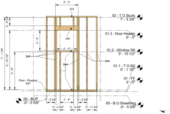 Example of one of the drawing sheets provided to students: a window elevation view of the framed wall. See the Appendix A for the full set of drawings.