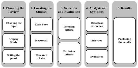 Our SLR process closely followed the method proposed by Denyer and Tranfield [10], which consists in a pre-established protocol that assumes five different stages: (i) review planning, (ii) establishing study limits, (iii) selection and evaluation of the inclusion and exclusion criteria, (iv) critical analysis and overview of the gathered data, and (v) (eventual) publishing of the obtained results. It should be noted that the SLR protocol is intended to minimize the human element (and therefore subjectivity). Figure 1 illustrates the sequence of these steps: