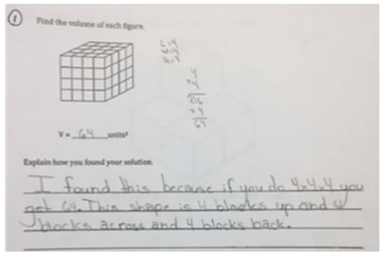 To illustrate this case, we present an example from Hannah’s third cycle in the approximation of practice when she examined a piece of written work that involved a student finding the volume of a cube and explaining their solution (see Figure 4).