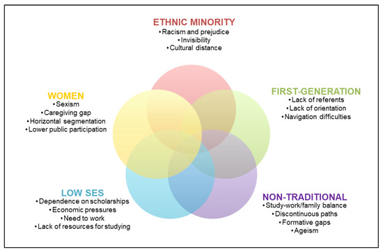 17]. Indeed, beyond the issue of financial support for disadvantaged groups, actions need to be taken to guarantee that campuses are free from discrimination, develop mechanisms aimed at the early detection of problems, promote flexible study alternatives, and recognise previous experience, among other measures (European Commission, 2017). Accordingly, Friedman and Garaz [