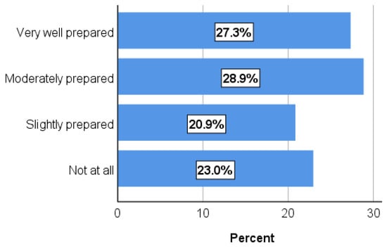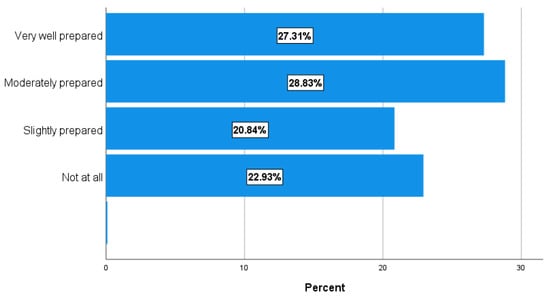 When asked to indicate how well prepared they were, at the beginning of the spring 2020 lockdown, to attend courses delivered remotely, about 56 percent of students stated that they were very well or moderately prepared, while the rest that they were slightly or not prepared at all (see Figure 5).