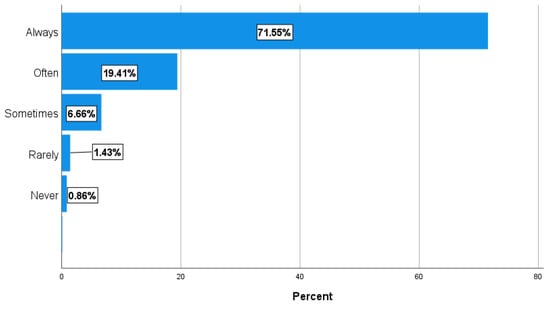 As illustrated in Figure 6, more than 90 percent stated that they always or often attended (71.6% always, 19.4% often) the lessons offered remotely due to COVID-19.