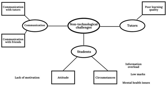 In addition to technological challenges, however, nontechnological challenges were also faced by students during the pandemic; the most commonly highlighted have generally been classified as social [9], methodological [10], behavioral [9,10], and financial [11].