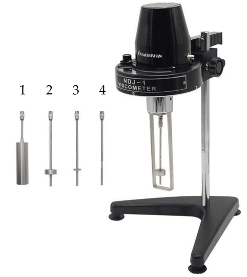 Determination of the viscosity of the zein solutions was carried out in a Brookfield Synchro-Lectric Viscometer, model LVF (Brookfield Engineering Laboratories, Stoughton, MA, USA). This consisted of a rotation viscometer with 4 types of needles, marked from 1 to 4, as shown in Figure 2.